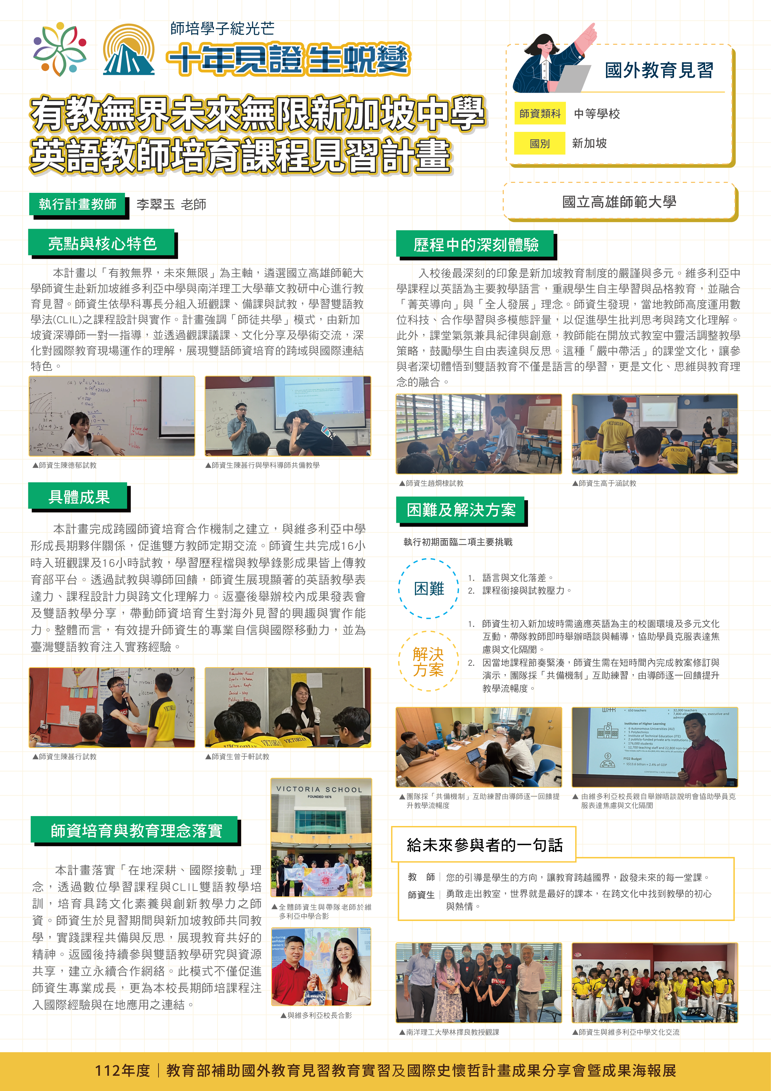 有教無界 未來無限-新加坡中學英語教師培育課程見習計畫 |