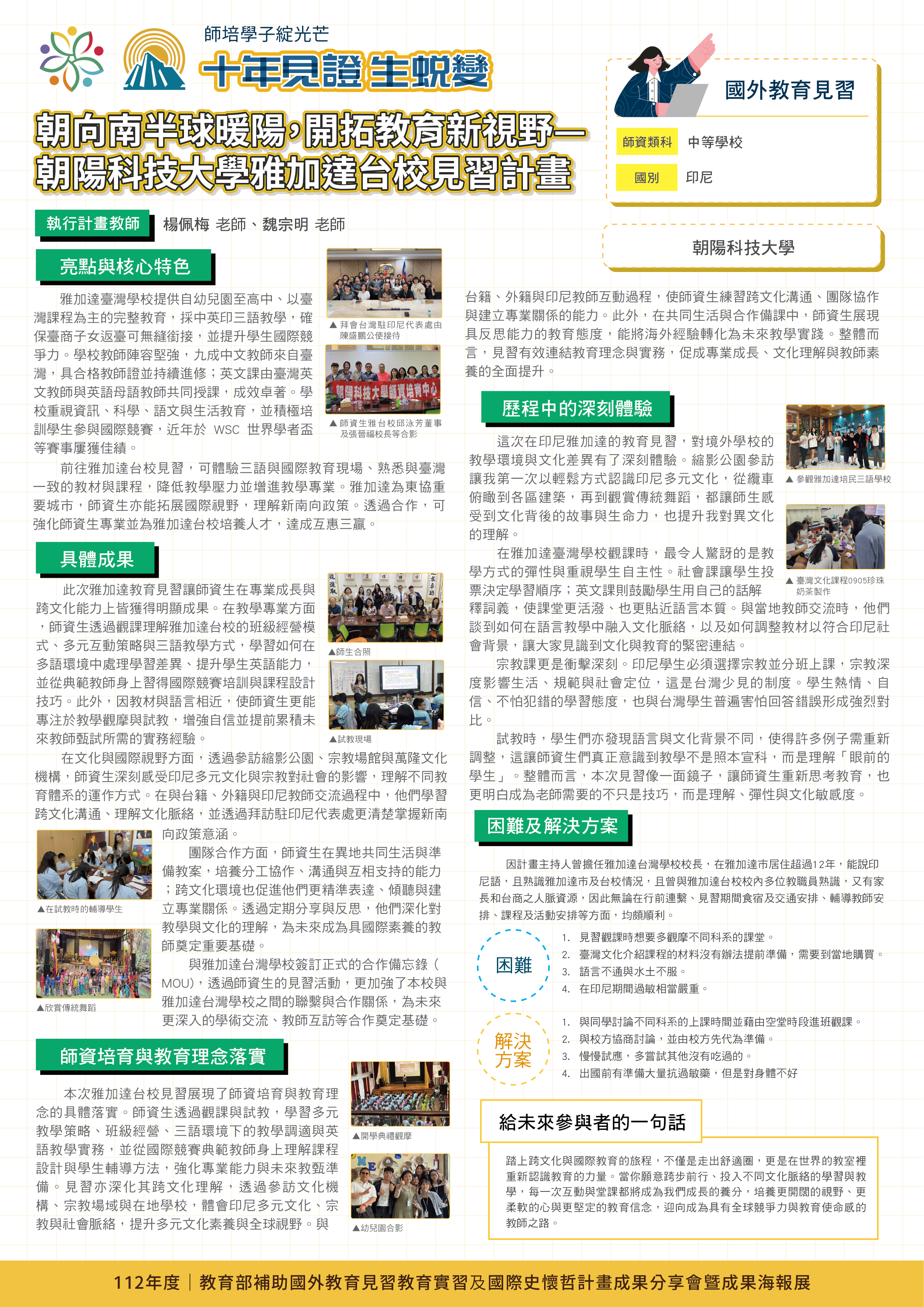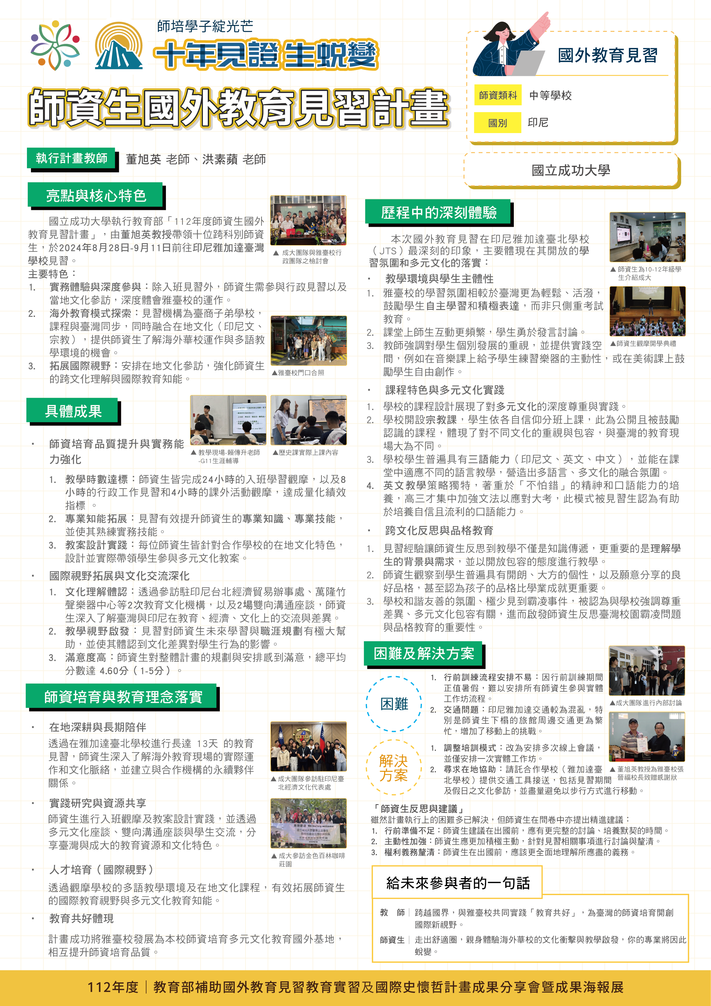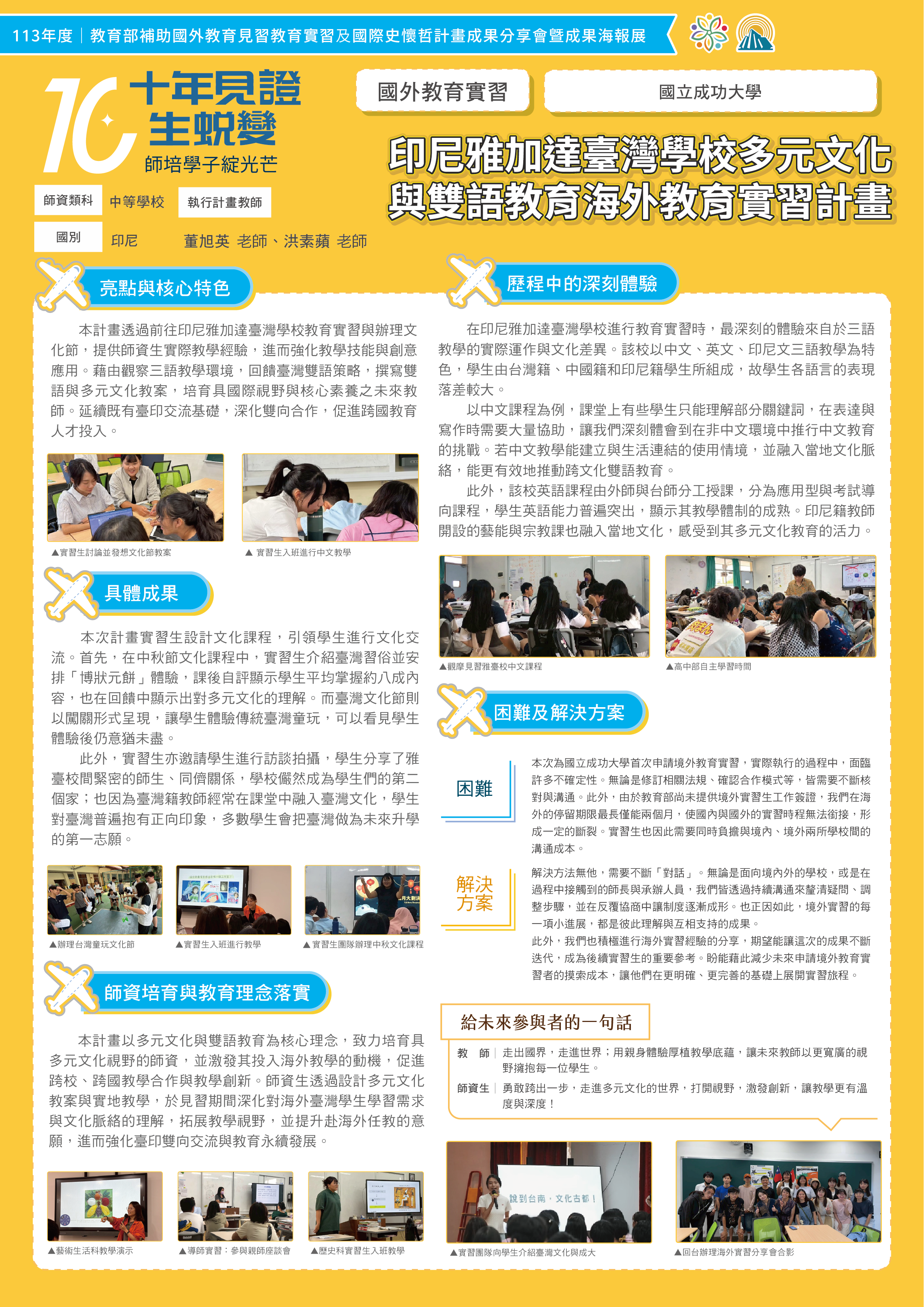 印尼雅加達臺灣學校多元文化與雙語教育海外教育實習計畫 |