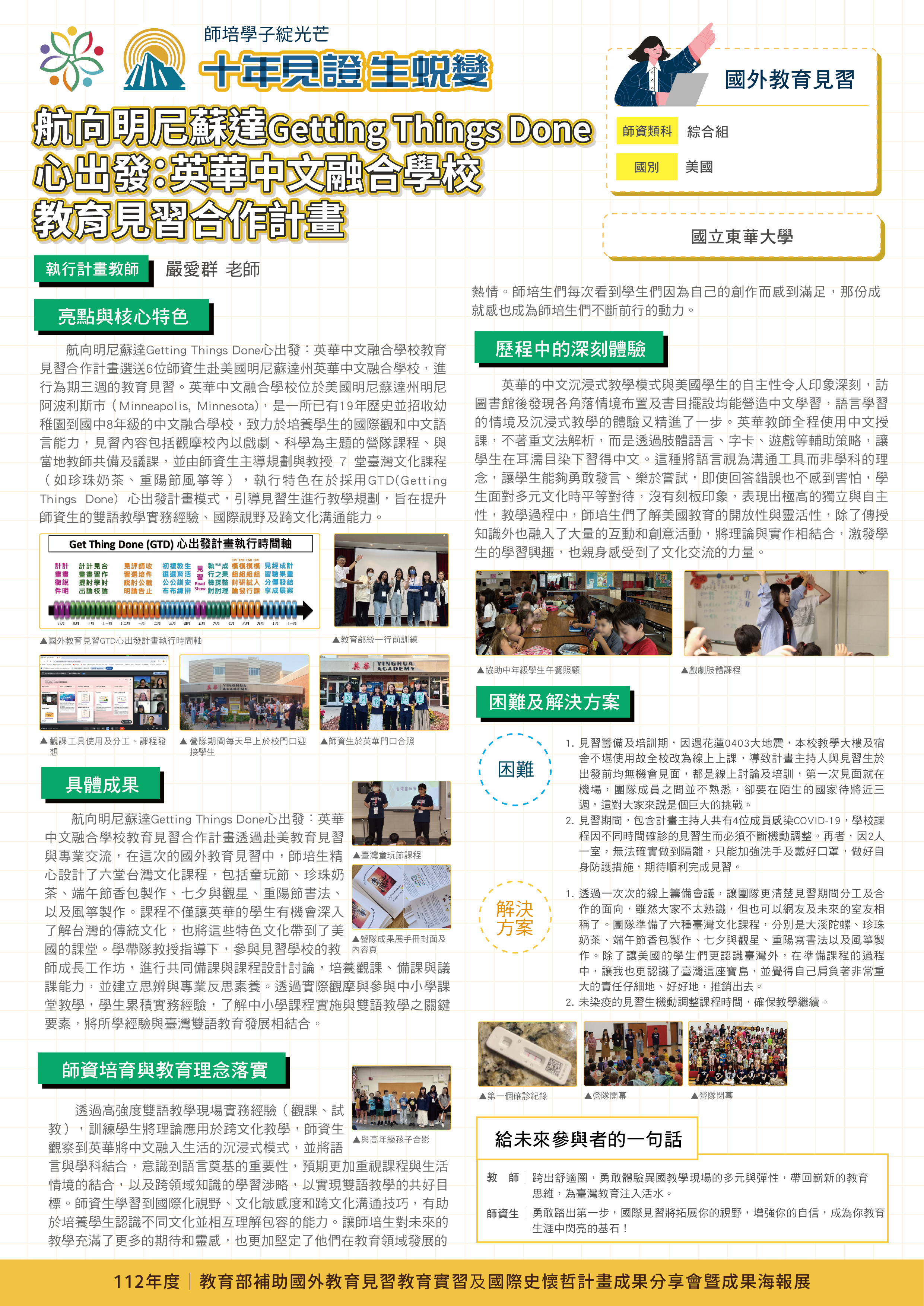航向明尼蘇達Getting Things Done心出發:英華中文融合學校教育見習合作計畫 |