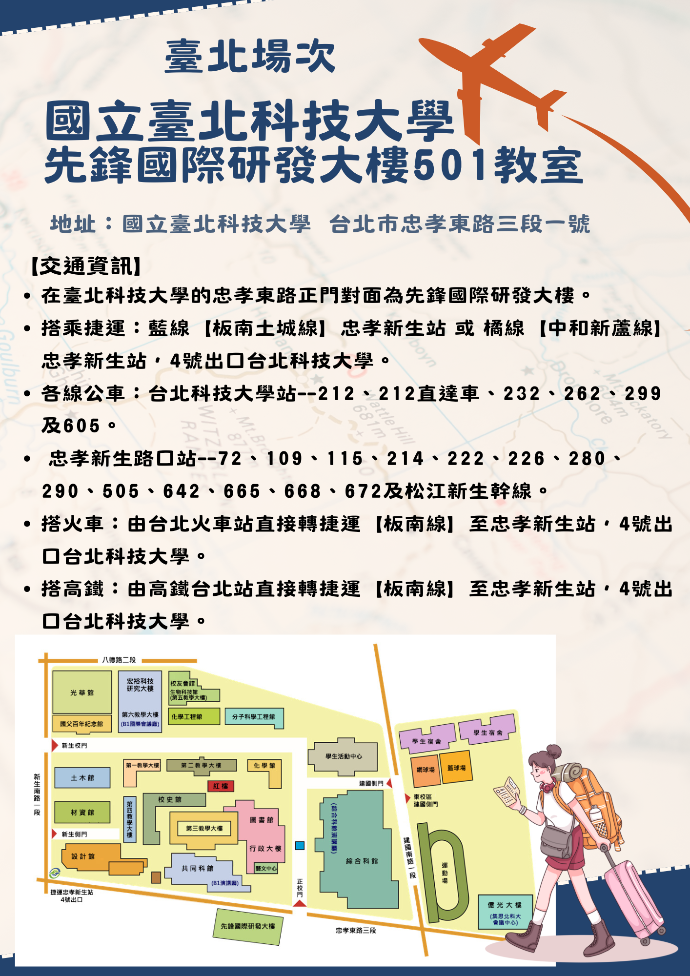 【臺北場次】 |115年5月2日(六) | 國立臺北科技大學 先鋒國際研發大樓501教室 (台北市忠孝東路三段一號_北捷忠孝新生站3號出口 )。
